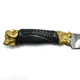 Корпус ножа выполнен из благородной дамасской стали, обработанной вручную. Подставка изготовлена из натурального рога, усиленного латунью. Покрытие изделия – золото высшей пробы, придает ножу сияние и роскошь.